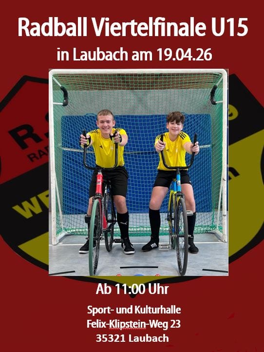 Am 19.04.2026 findet in Laubach das Viertelfinale der Gruppe 2 im Radball U15 statt.
